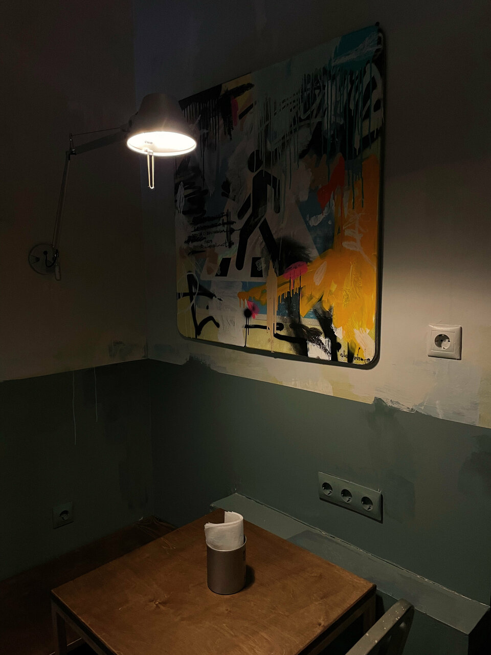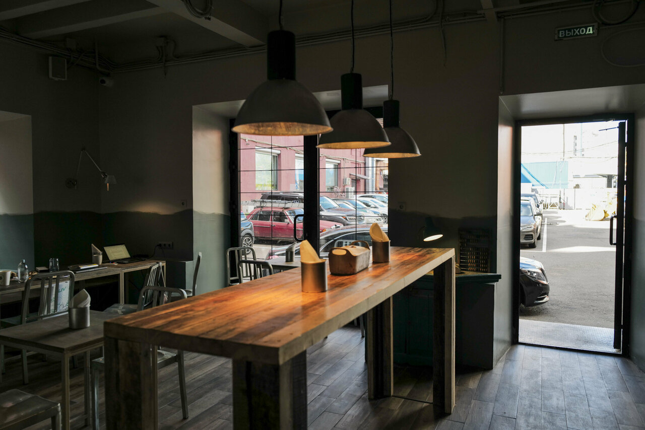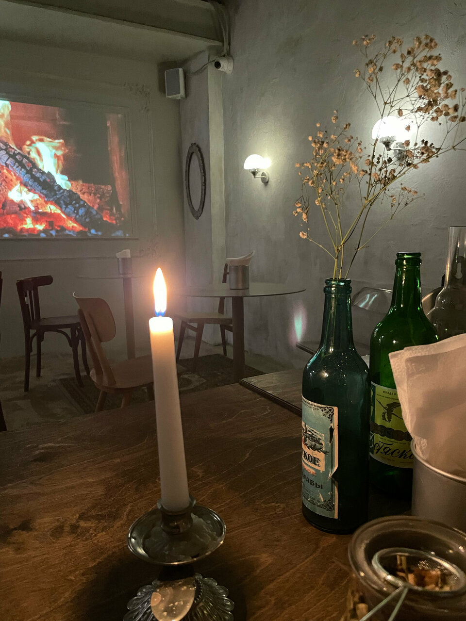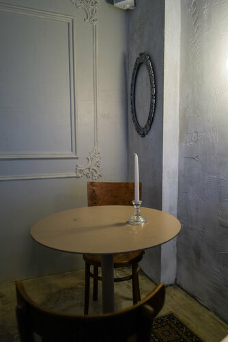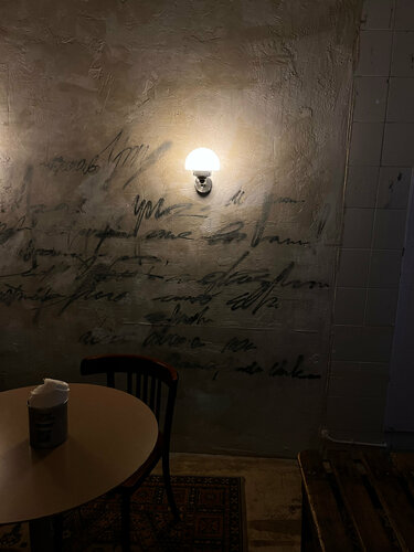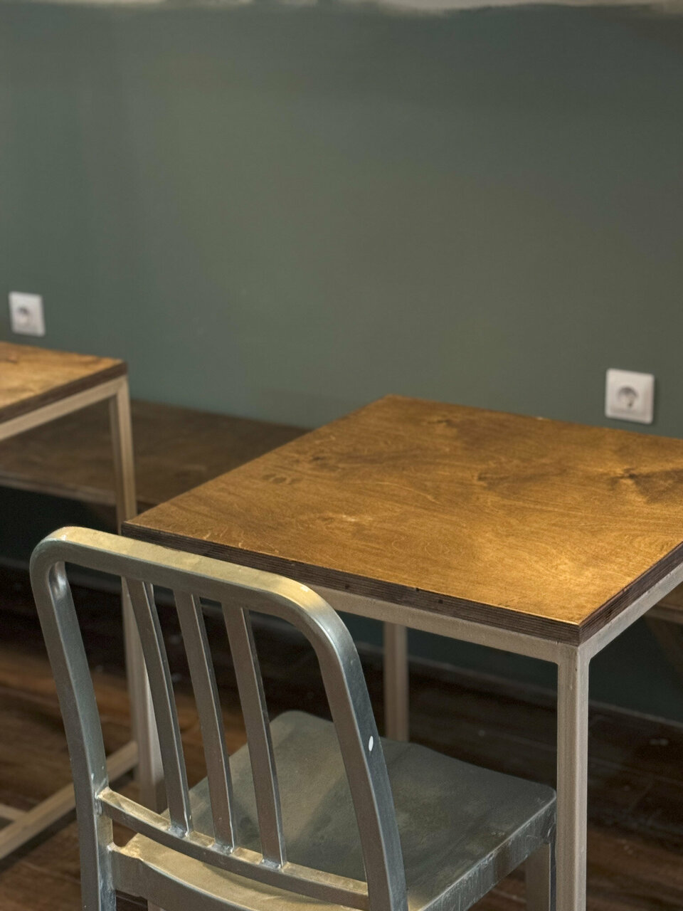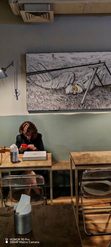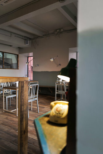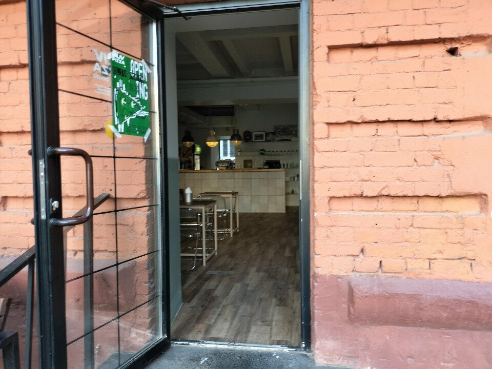 Заведение находится на территории Красного октября, бывшей кондитерской фабрики Эйнема, в Ореховом цеху – поэтому часть мебели стилизована под ореховое дерево.