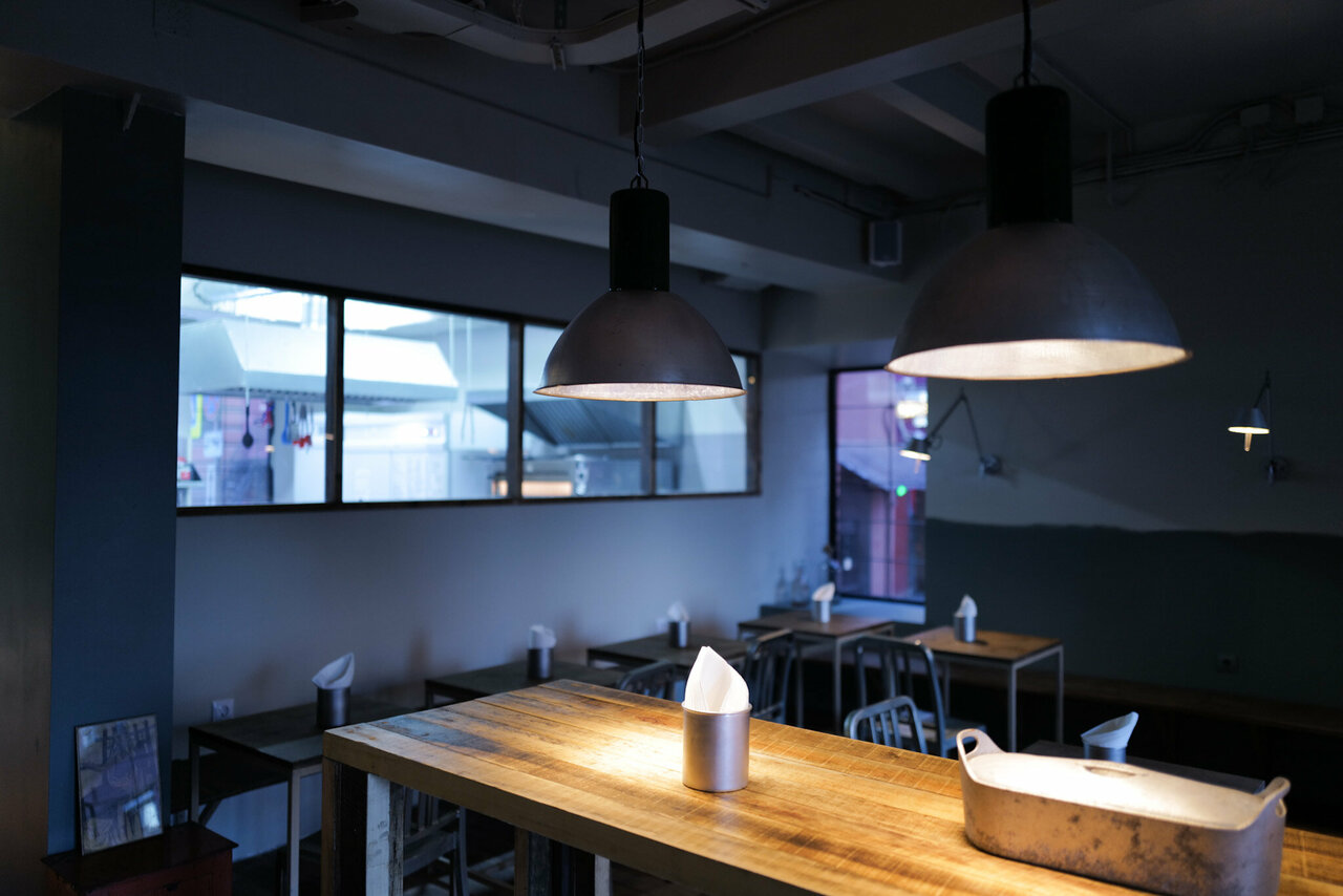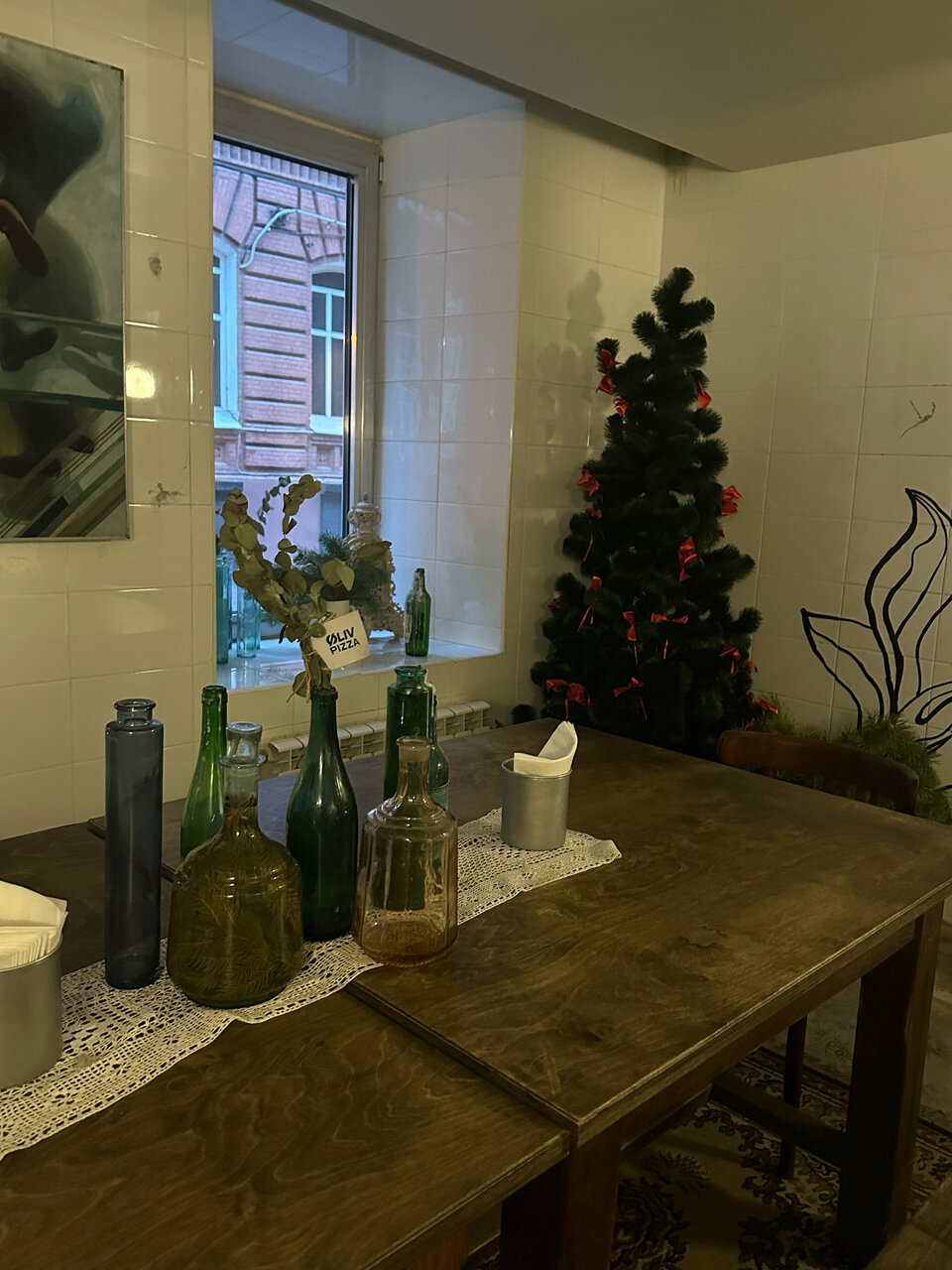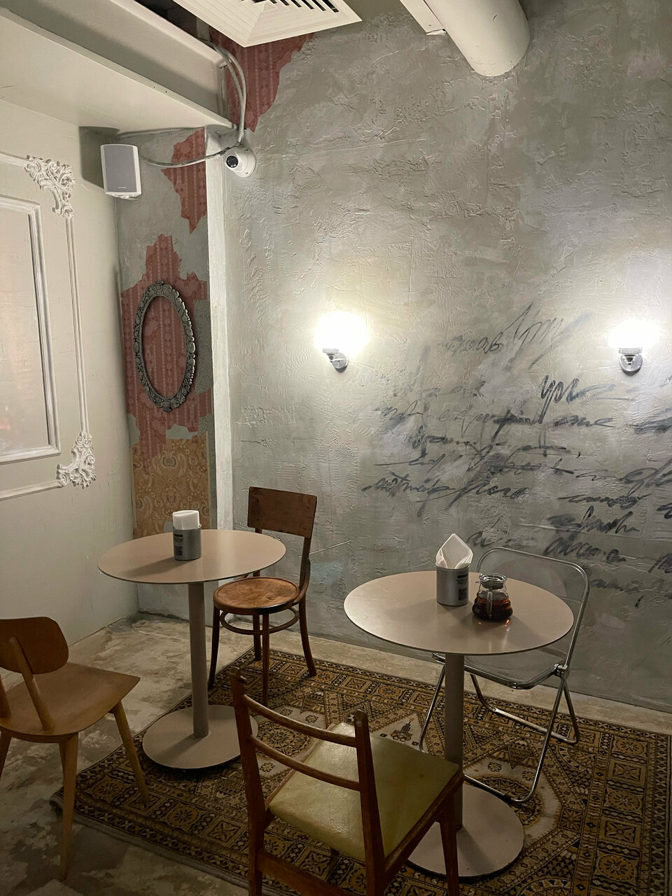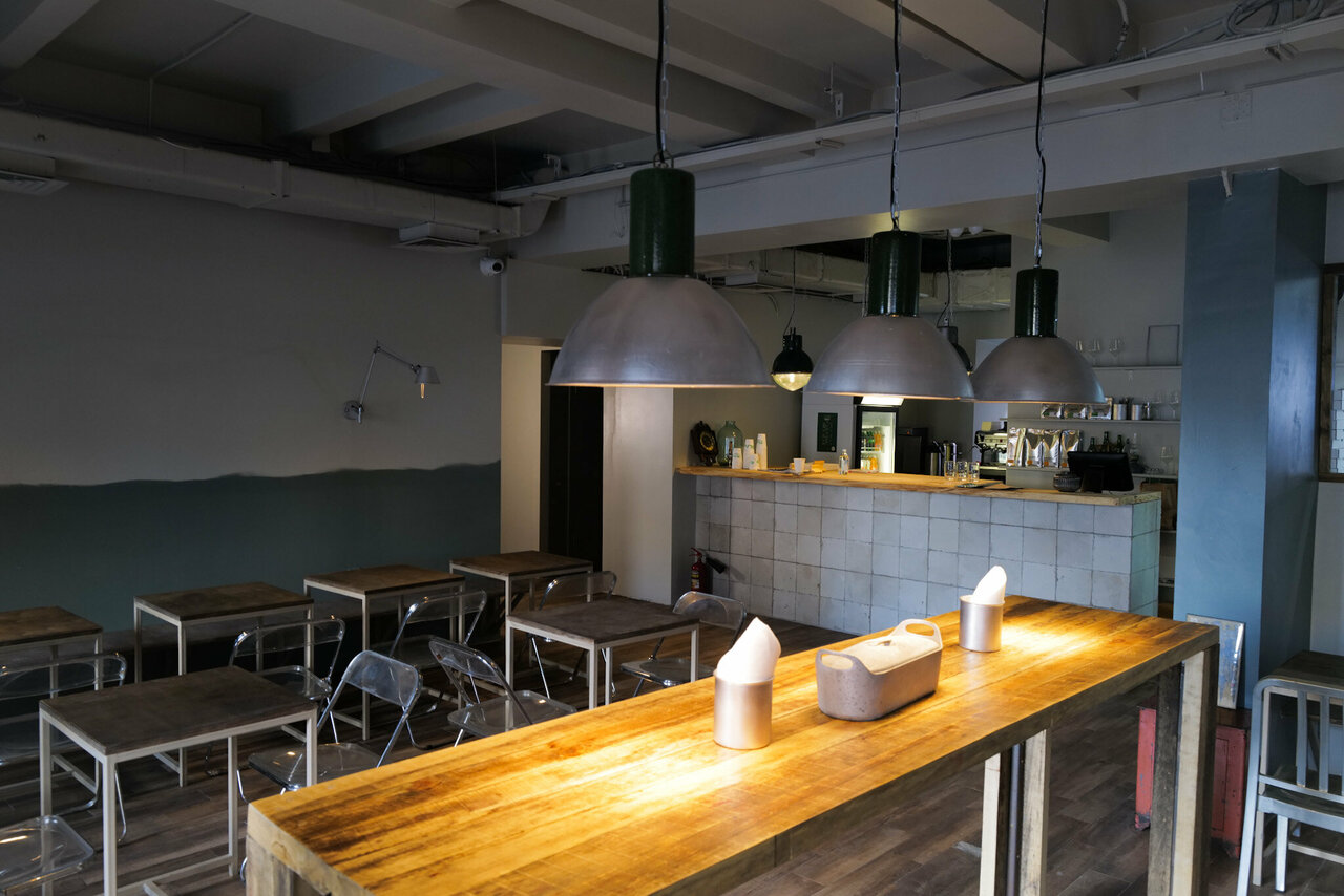 Заведение находится на территории Красного октября, бывшей кондитерской фабрики Эйнема, в Ореховом цеху – поэтому часть мебели стилизована под ореховое дерево.