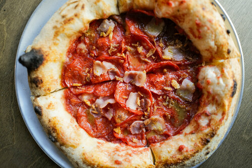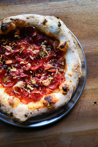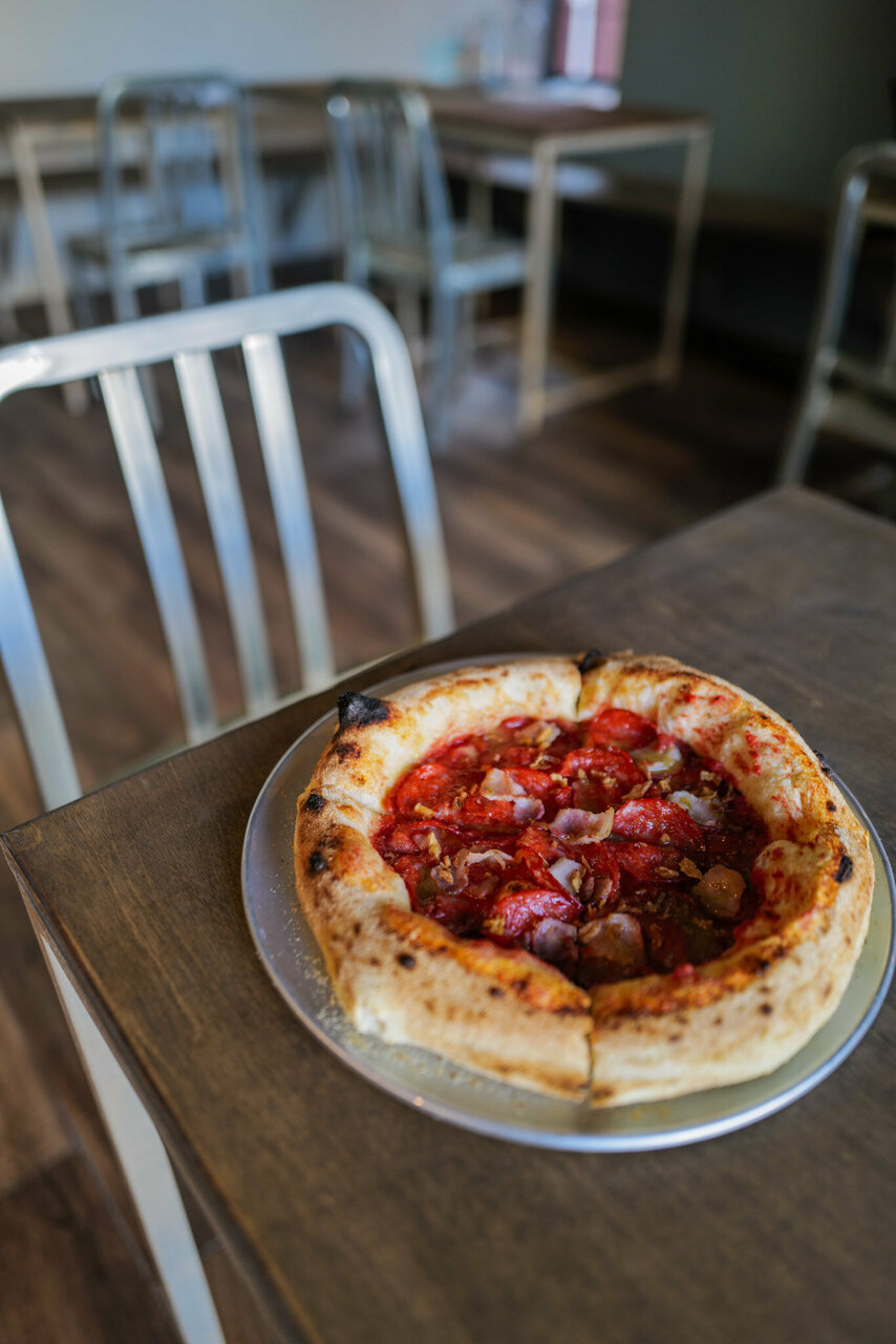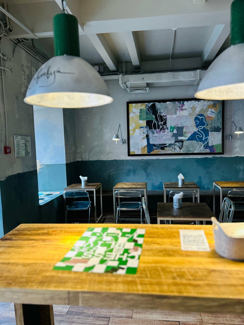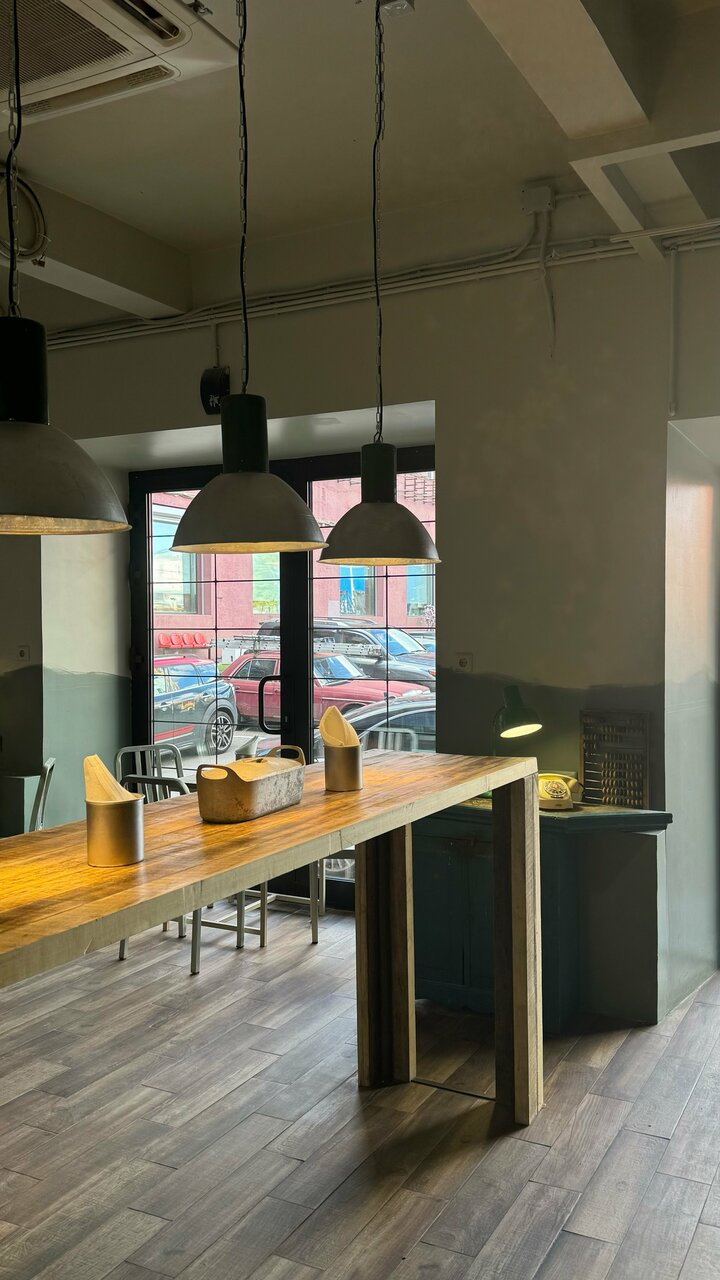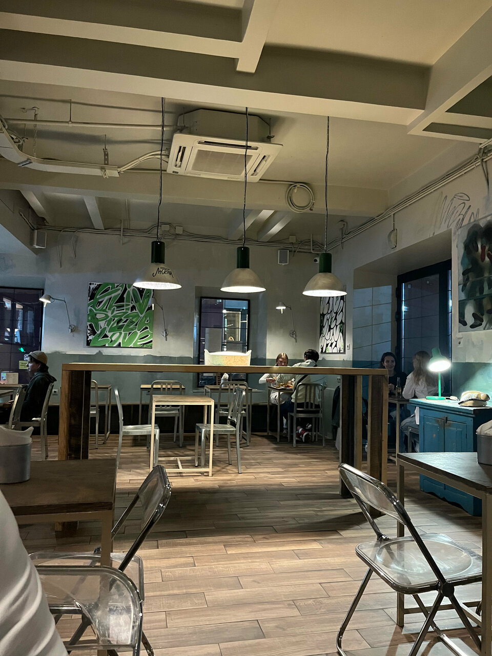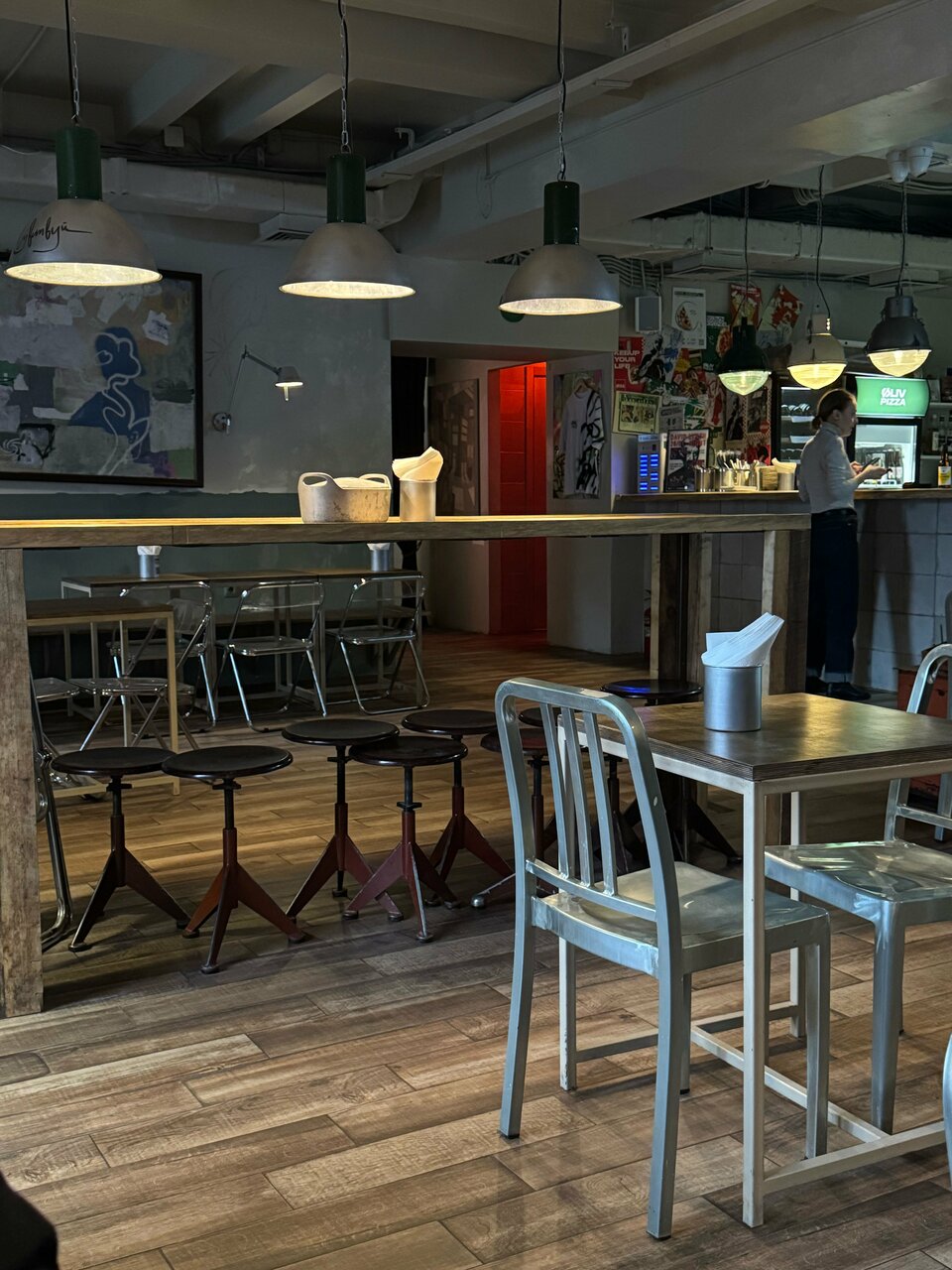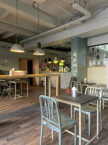 Итальянский стритфуд проект от команды Ø36 Kebab. В меню неаполитанская пицца, пицца сэндвичи, пицца доги, салаты и итальянские десерты. В интерьере – винтажная мебель и много дерева, а также индустриальные светильники, висевшие в цехах фабрики.