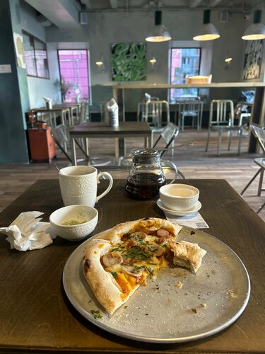 Очень вкусно и уютно! Была здесь 2 раза. Пробовала пиццу, сэндвич, кофе. Мне очень понравилось! Привередлива к кофе. Капучино, латте в других заведениях обхожу стороной, так как не чувствую там кофе, много молока, сиропов, неприятное послевкусие. А здесь капучино - ммм, прям в самое сердце. Пицца прекрасна. Не перегружена и не пустая)) Атмосфера расслабляет. Классная музыка. Хорошее обслуживание. Однозначно рекомендасьЕн!