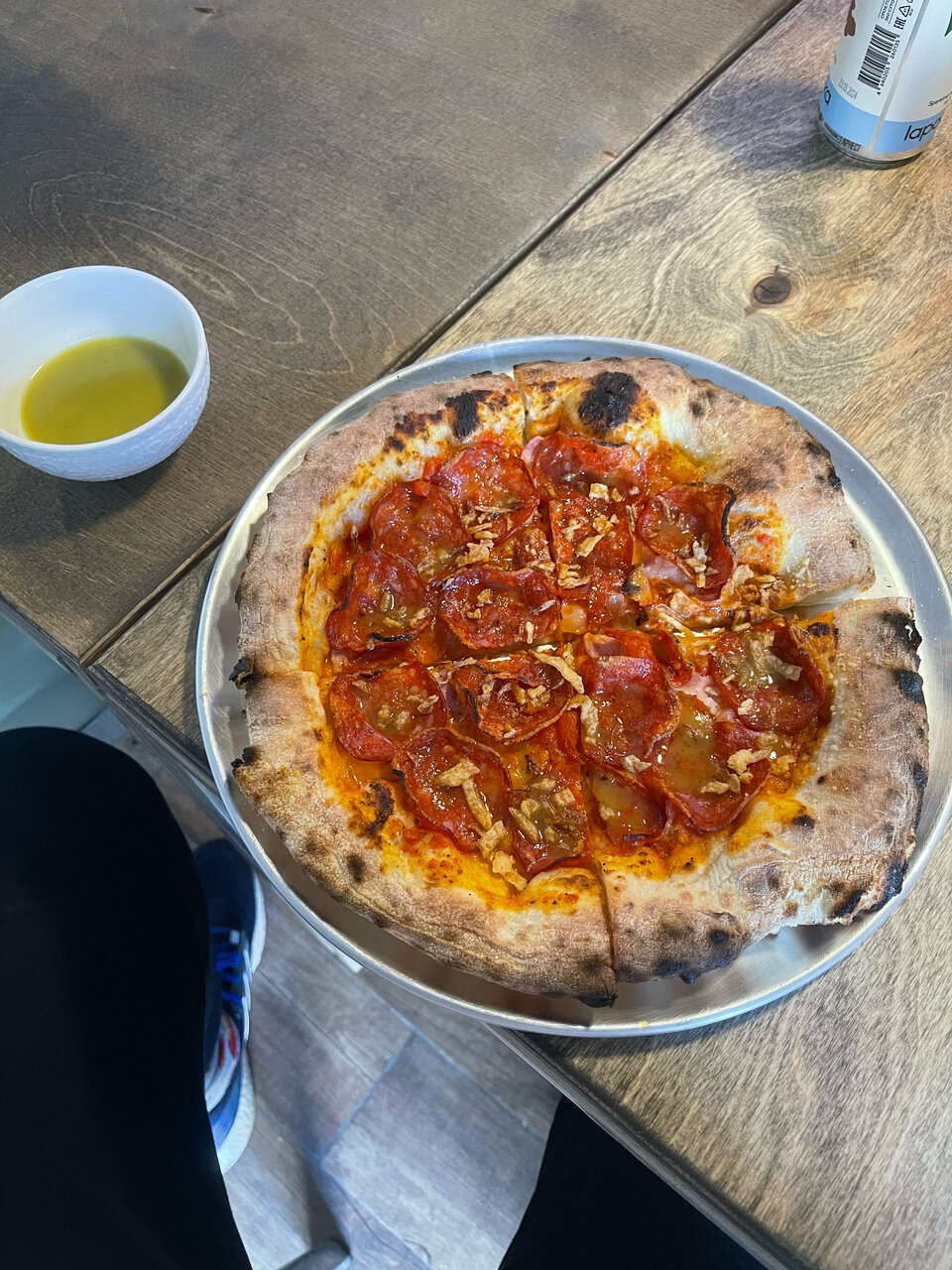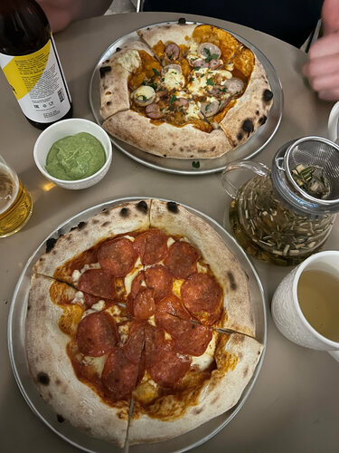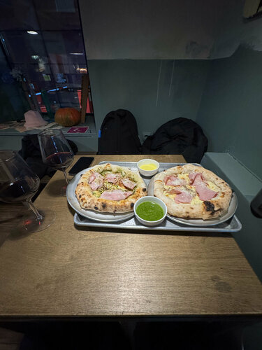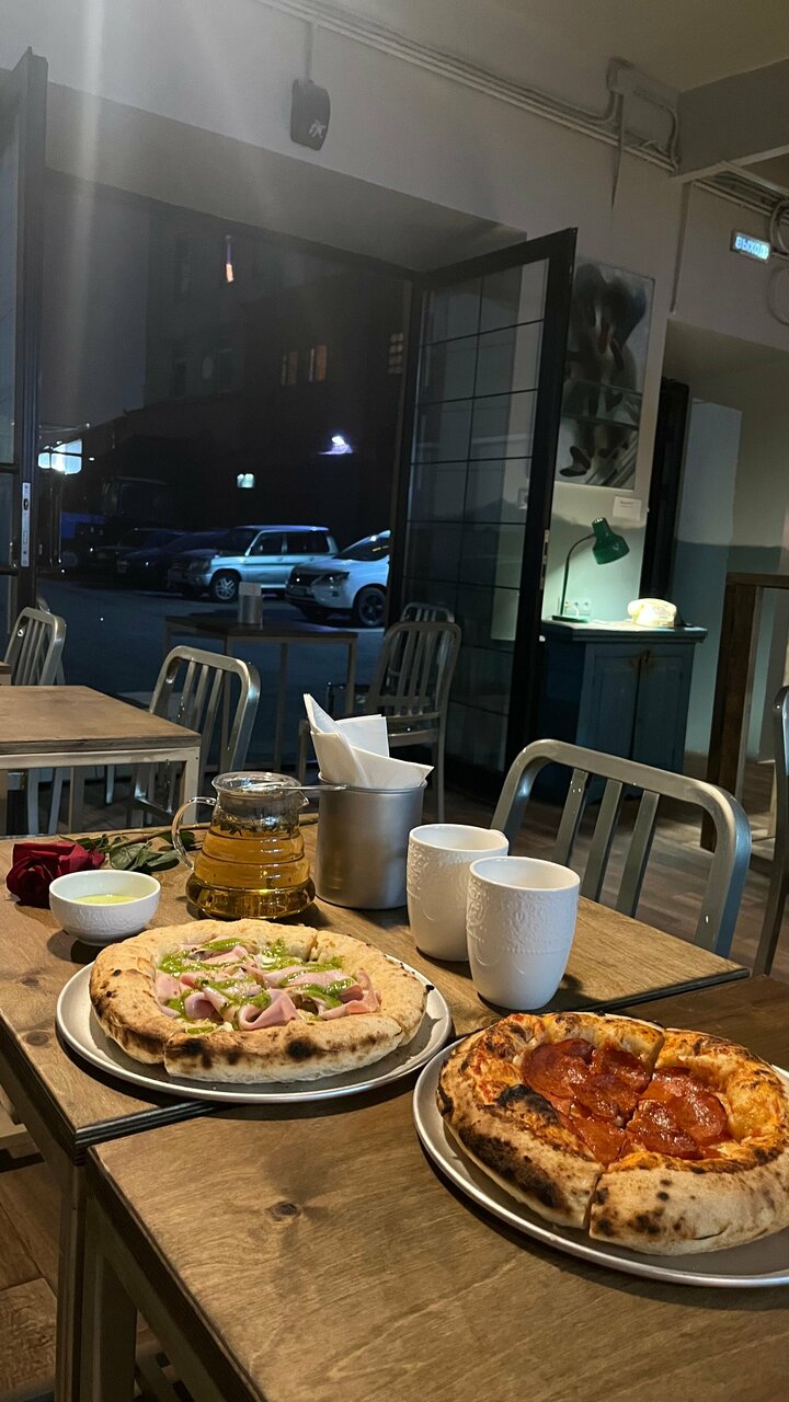 Очень классные ребята, слаженная команда! Пиццерия от создателей ø36 kebab, так что если нравится там, рекомендую сходить и сюда. Зал довольно большой, с интересным дизайном. Пицца с пастрами из индейки супер 💔